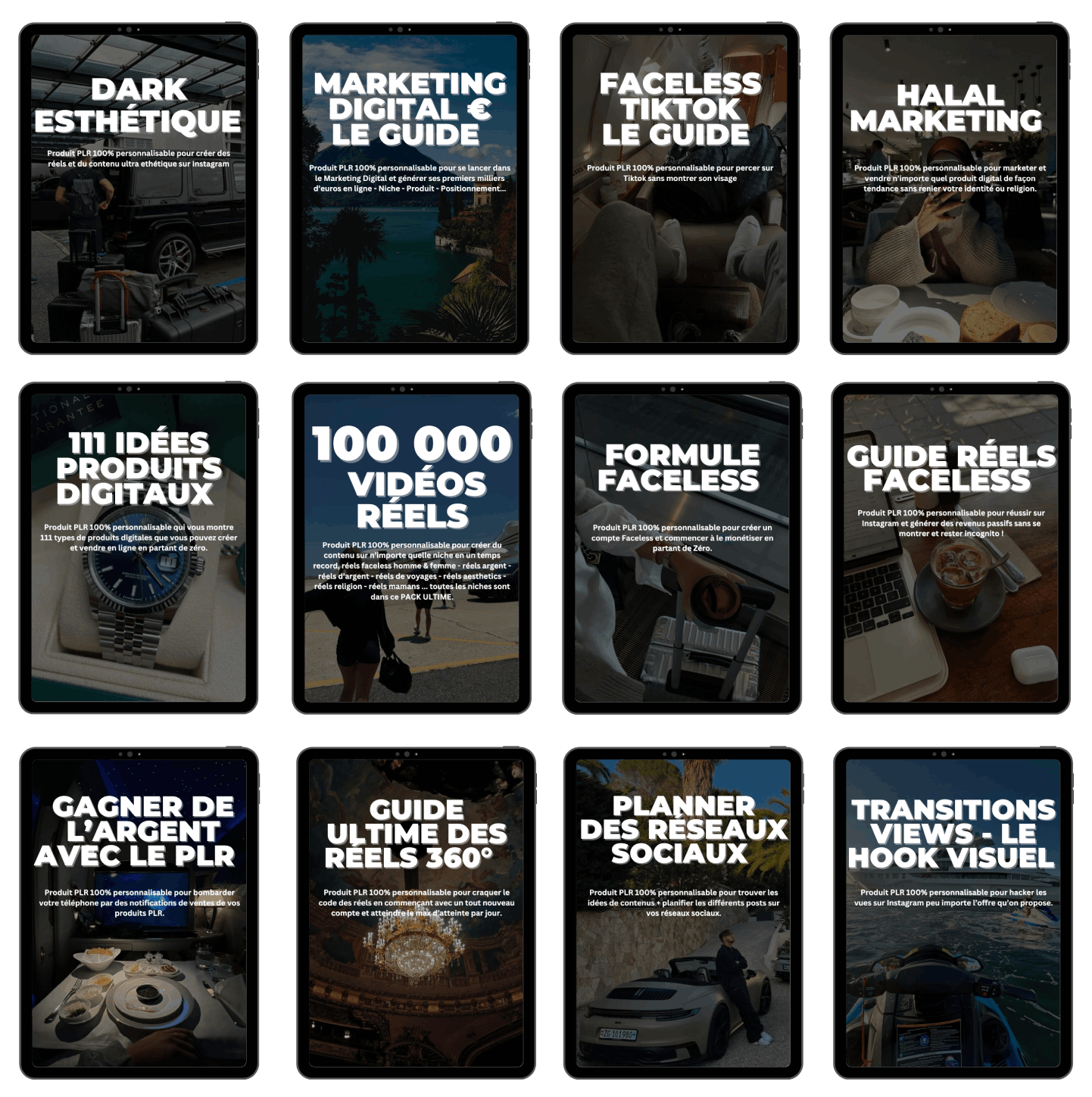 . Les produits PLR sont des produits digitaux (ebooks, mini-formations, templates) que tu peux personnaliser et revendre autant de fois que tu le souhaites.