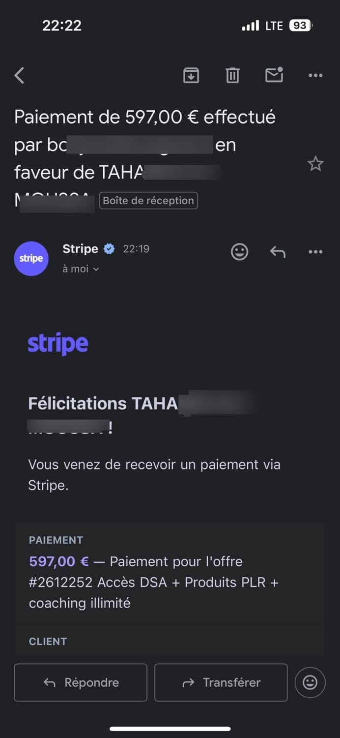 Tu reçois ton reçu et l’accès à la formation dès le paiement validé.